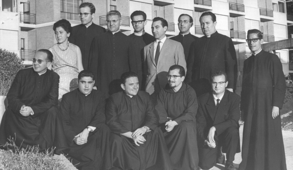 El 29 de junio de 1966, el periódico YA publicaba una fotografía con una explicación al pie que comienza así: “La tercera promoción (1965-66) del Instituto Social León XIII incluye en esta ocasión una mujer, la primera licenciada en Ciencias Sociales por dicho centro”. La mujer de la foto destaca inevitablemente entre 7 curas, 4 religiosos y un hombre seglar. Mira hacia un lado, con expresión seria y mirada firme. Es María Jiménez Bermejo.