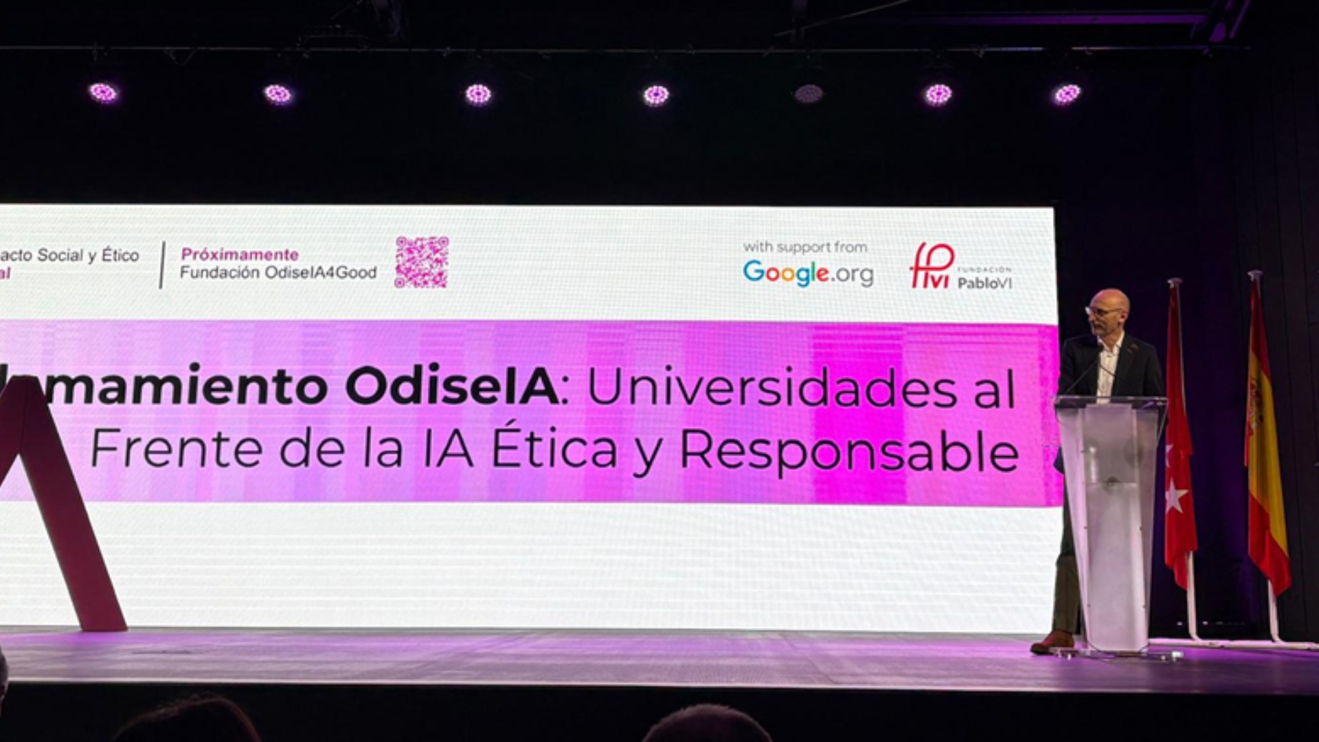 Además de representantes de las instituciones promotoras de este hackathon: Idoia Salazar y Richard Benjamins presidenta y CEO de OdiseIA, respectivamente; y Miguel Escassi, Director de Políticas Públicas y RR.II en Google; y el propio director general de la Fundación Pablo VI, miembro también del consejo director de OdiseIA, se contó también, para el cierre, con Manuel Pérez Gómez, viceconsejero de Digitalización de la Comunidad de Madrid; y Óscar López, ministro de la Transformación Digital y Función Pública. El representante de la Comunidad de Madrid abogó por una colaboración público-privada para lograr esa gobernanza que “no empieza en la norma sino en el diseño”. El ministro de Transición Ecológica, por su parte, defendió la regulación que “no es incompatible con la competitividad”. “O la inteligencia artificial sirve a las personas”, dijo, “o no sirve para nada”.