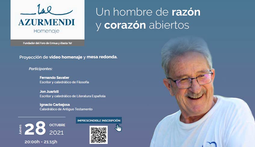 Durante el homenaje, en el que se contará con la presencia de familiares, víctimas y personalidades políticas y sociales, se proyectará un vídeo en el que diferentes figuras del mundo de la cultura, de la universidad y de la vida social valorarán su figura. A continuación, tendrá lugar una mesa redonda, con la presencia del filósofo Fernando Savater, el escritor Jon Juaristi y el sacerdote Ignacio Carbajosa, en la que se abordará una de las cuestiones que más interesó a Azurmendi: la apertura de la razón más allá de los límites en los que cierto pensamiento la encierra.