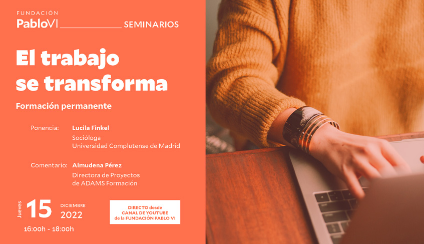 De esto se hablará en la próxima sesión del seminario “El trabajo se transforma” que se celebrará el próximo jueves, 15 de diciembre, con la ponencia de Lucila Finkel, socióloga y profesora de la Universidad Complutense Madrid, y el posterior comentario de Almudena Pérez, directora de Proyectos de ADAMS Formación.